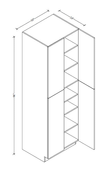 PC3096 Frameless Wall Pantry 30"Wx96"Hx24"D